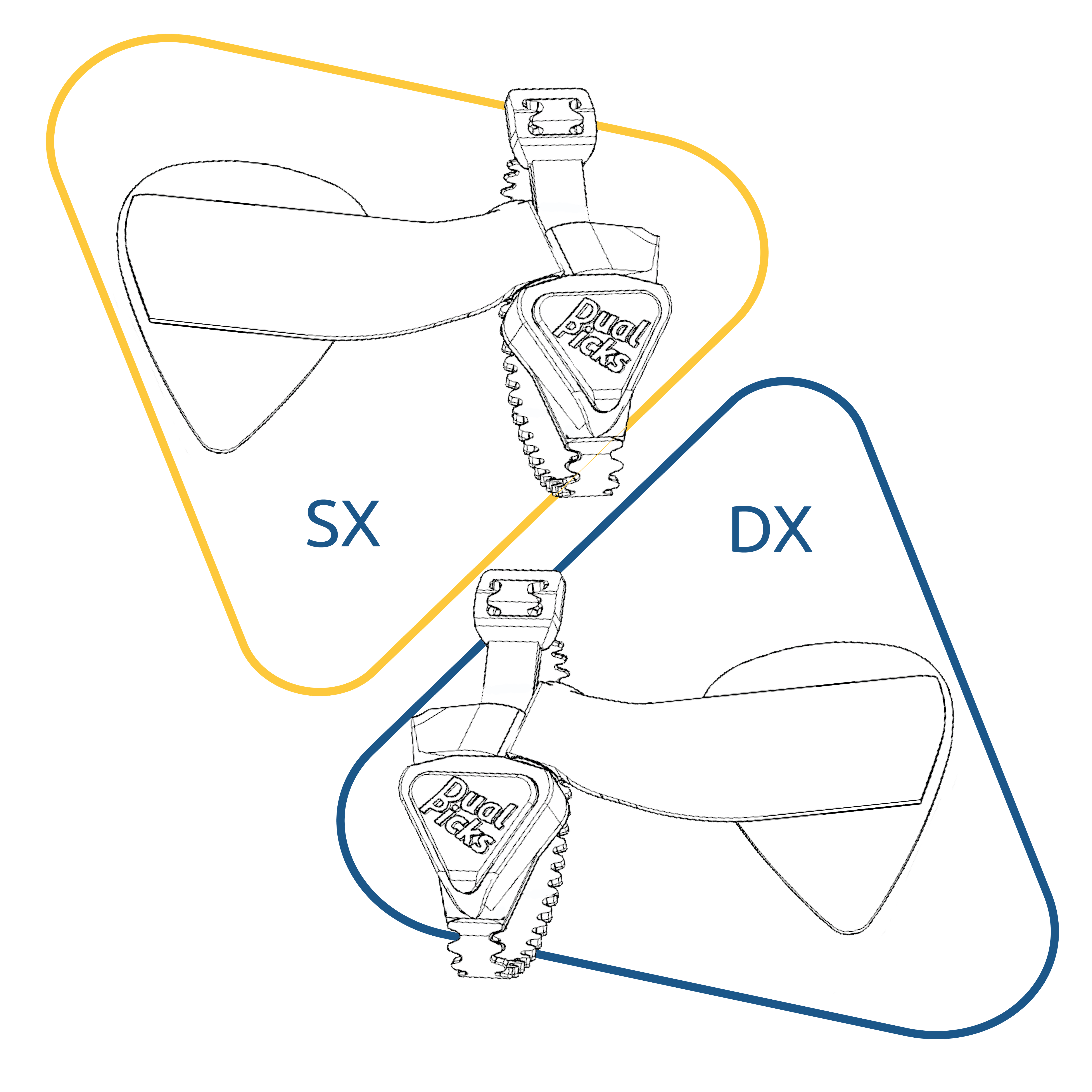 Il design innovativo di DualPicks è stato studiato per essere utilizzabile sia dai destri che dai mancini.